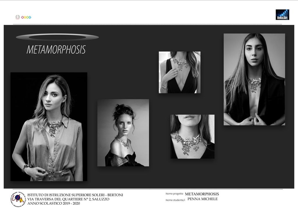Le opere selezionate sono rispettivamente “Archetype” di Stefano Ferrari, classe 5DA e “Metamorphosis” di Michele Penna della classe 3DA. La Parure “Archetype”, composta da un anello e un ciondolo; deriva dall’uso dei cerchi dai qualli, in quanto archetipi, si evolvono le forme dei gioielli, che riprendono le orbite ellittiche dei pianeti che Leonardo stesso ha osservato e delle quali ha intuito il meccanismo.