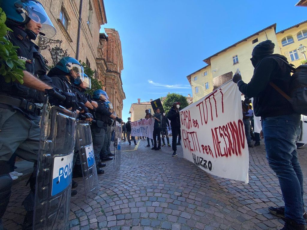 "Casa per tutti, in strada nessuno", il corteo degli stagionali della frutta arriva sotto il municipio di Saluzzo