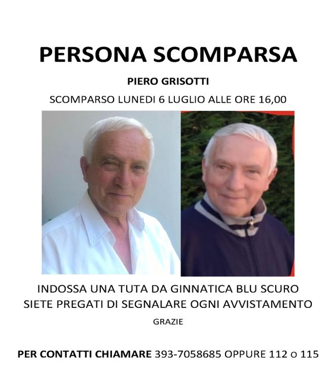 Si tratta di Piero Grisotti, pensionato e poeta per passione. Si è allontanato lunedì 6 luglio dalla casa di Varese Ligure. Soffre di disturbi di memoria. Il caso segnalato anche da "Chi l'ha visto". Il figlio pensa che il padre cerchi di tornare a casa a Saluzzo, suo riferimento mentale