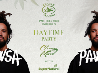 19th July 2020 Start H 03:00 PM LE VELE ALASSIO presents DAYTIME PARTY CHANGE YOUR MIND invites SUPERNATURAL w/ PAWSA TIME TABLE 15:00 > 18:00 - Francis Key 18:00 > 20:00 - Nicola Gavino 20:00 > ??? - Guest: PAWSA ??? > END - 100% Change Your Mind Soundsystem GREEN APERITIF 15:00 > 18:00 - Catering by Scola Restaurant of Castelbianco