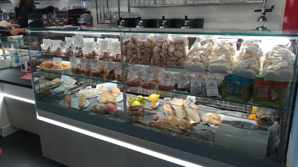 Poco più avanti, sulla destra si impone il lungo del bar, dove i clienti possono deliziarsi con una colazione ricca di prodotti dolci e salati.