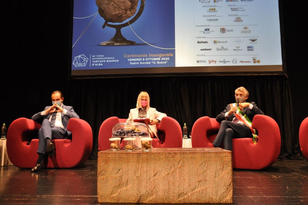 Sono stati ancora una volta i temi dell’attualità – dall’alluvione che ha messo in ginocchio vaste zone del Piemonte ai preoccupanti numeri della seconda ondata di contagi da Covid – a tenere banco all’inaugurazione della "Fiera Internazionale del Tartufo Bianco d’Alba", svoltasi con la cerimonia tenuta nel tardo pomeriggio di oggi, venerdì 9 ottobre, tra il Teatro Sociale Busca e il Mercato Mondiale del Tartufo allestito in un’inedita versione "on plein air" nella consueta location del cortile della Maddalena.