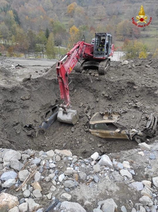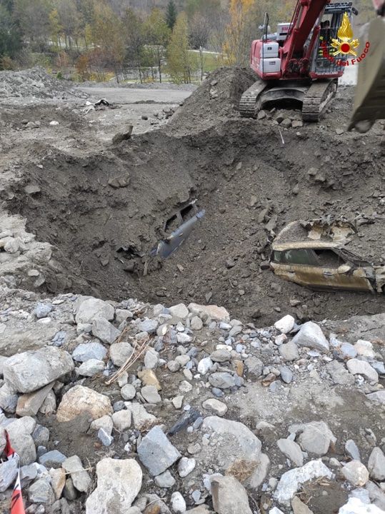 Auto sepolte da 4 metri di fango e detriti: vigili del fuoco al lavoro a Limone Piemonte (FOTO E VIDEO)