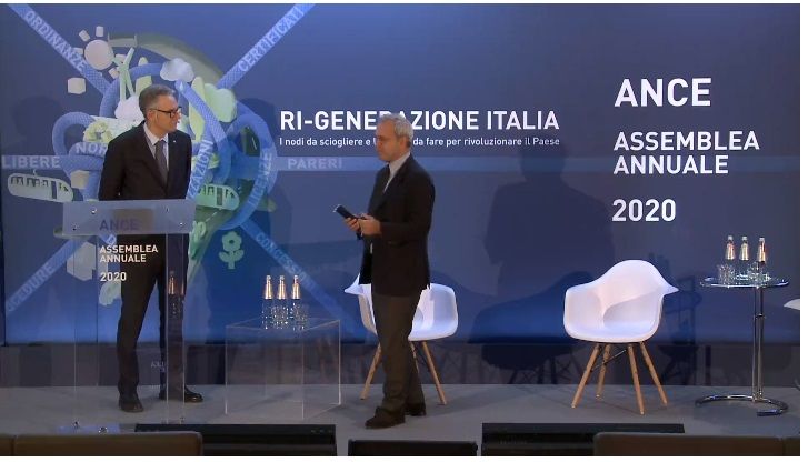 Così si è espresso il presidente, Gabriele Buia, durante la relazione con cui ha aperto l’assemblea annuale dell’Ance, intitolata “Ri-generazione Italia”, svoltasi in videoconferenza per ottemperare alle norme emesse dal Governo al fine di limitare i contagi da Covid-19.