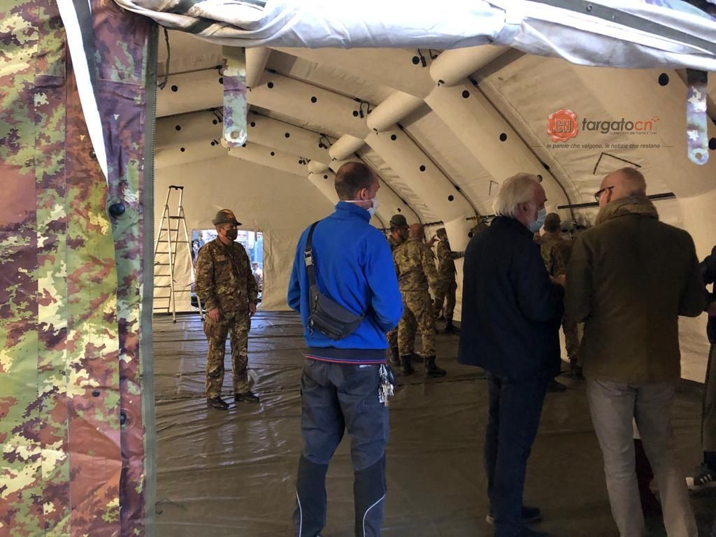 All’interno delle due strutture, saranno allestite le attrezzature sanitarie a cura dell’Asl Cn1, mentre domani l’Esercito monterà ancora il riscaldamento.