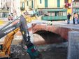 La pietra centrale del ponte Odasso è stata rimossa prima della demolizione e al momento è stata portata nel museo cittadino dove sarà esposta.