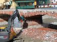 Al momento le ruspe e i macchinari stanno "smontando" l'arcata centrale, mentre, contemporaneamente, vengono tagliati i lati della struttura per fare in modo che non ci siano oscillazioni sulle arcate circostanti, in ultimo verranno abbattuti i piloni.