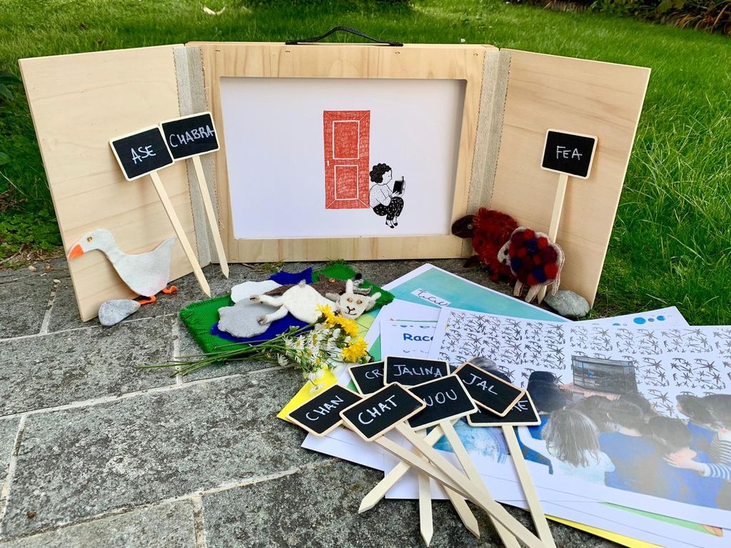 “Rispetto alle narrazioni estive e dello scorso anno ho dovuto trovare una modalità che potesse essere coinvolgente anche tramite video, senza l’empatia della presenza. Adattare alcune storie alla tecnica del kamishibai ha permesso alle classi di vedere le immagini e di seguire sulla LIM la narrazione così, anche a distanza, la sonorità dell’occitano si è fatta sentire: dai saluti iniziali fino al canto del gallo (che a nòsto mòdo canta Cacaraca!). Con i bambini e le loro insegnanti abbiamo provato a contare insieme per aprire le porte del butai, a scoprire i nomi occitani degli animali che le diverse storie presentavano e a viaggiare anche con loro tra le lingue. È stato bello che anche gli alunni che erano a casa ammalati abbiano potuto collegarsi e partecipare insieme alla classe proprio a un’attività intorno alla lingua”.