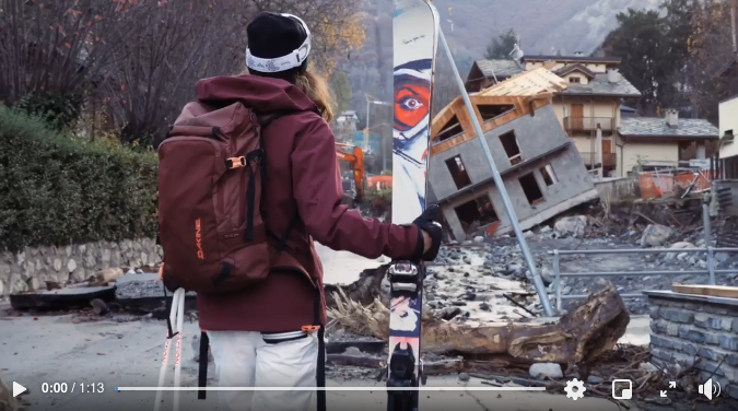 L'insegnante di sci si lancia in una discesa sulle piste senza neve. Adesso che di neve ne è scesa e ne sta scendendo ancora, il suo video diventa ancora più significativo e, in fondo, viste le prospettive, anche molto triste.