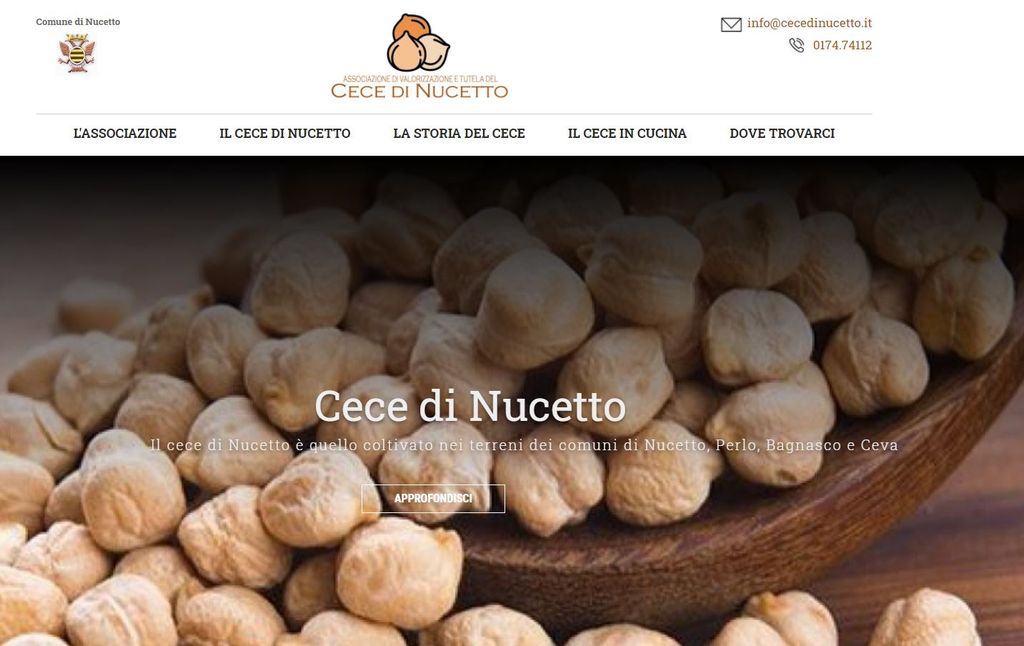 Il sito è facilmente raggiungibile all’indirizzo www.cecedinucetto.it e propone una panoramica a 360 gradi di tutto il mondo che ruota attorno al “cece” di Nucetto: come è nato il progetto, il suo perché, la sua storia e l’Associazione che ne cura tutta la filiera.