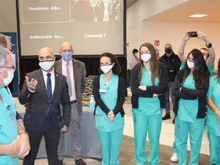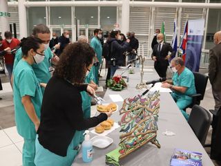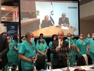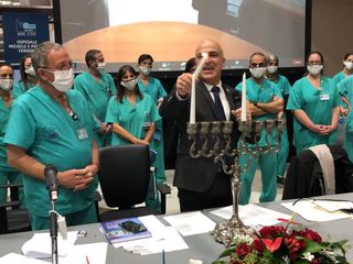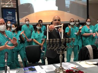 "La festa ebraica celebrata rappresenta nella tradizione ebraica una transizione dall'oscurità alla luce e una nuova speranza di libertà. Non c'è niente di più appropriato che celebrare questa festa insieme alle équipe mediche che combattono contro il Covid-19, alla vigilia delle prime approvazioni del vaccino e dell'inizio della loro distribuzione mondiale, nella speranza di una transizione dall'oscurità e dal grande dolore nel 2020 alla speranza e grande promessa per il 2021", ha affermato l'ambasciatore israeliano a Roma, Dror Eydar.