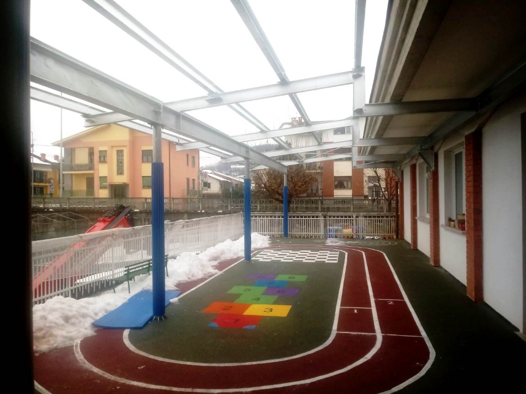 Grazie ad un finanziamento della Fondazione Cassa di risparmio di Cuneo, in seguito alla partecipazione ad un bando, è stara realizzata una nuova area-gioco coperta all’esterno dell’edificio della scuola statale dell’infanzia, in via Pes di Villamarina. Sotto il nuovo porticato sono disegnate a terra una mini pista di “atletica”, una grande scacchiera e il gioco della campana.