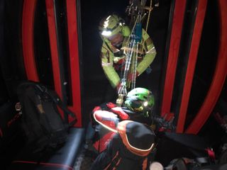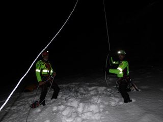 Gli uomini della XVI^ delegazione di Mondovì del Soccorso Alpino e Speleologico Piemontese hanno messo in atto le manovre da attuare in caso di blocco dell'impianto di risalita.