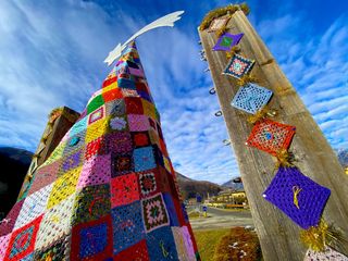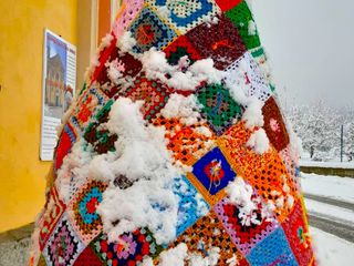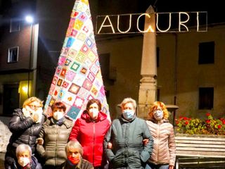 I 1800 quadratini di lana, realizzati all'uncinetto, ai ferri e al telaio da una cinquantina di persone, messi insieme, hanno dato vita a tre originalissimi alberi di Natale, che ora fanno bella mostra di loro nella rotonda di ingresso al paese, in piazza Vittorio Veneto, e di fronte alla Confraternita di Santa Margherita.