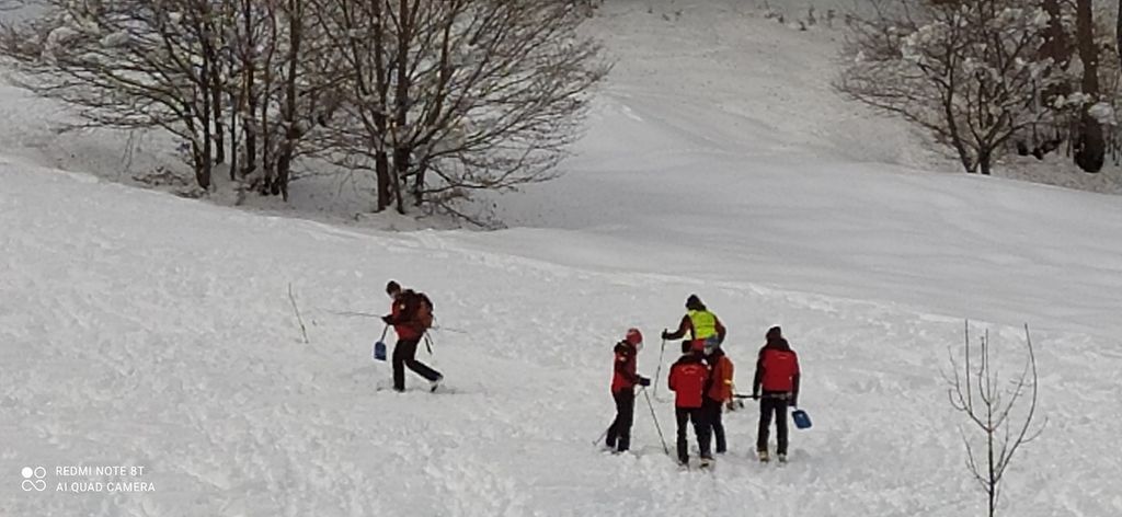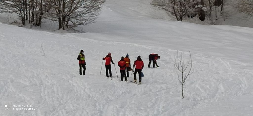 Simulazione di soccorso di un scialpinista travolto da una valanga.Ad organizzarla, ieri 10 gennaio, la stazione del Soccorso Alpino Valle Pesio.