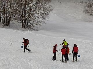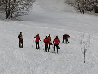 Simulazione di soccorso di un scialpinista travolto da una valanga.Ad organizzarla, ieri 10 gennaio, la stazione del Soccorso Alpino Valle Pesio.