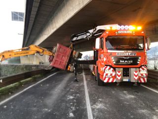 Si solleva il ribaltabile, camion si cappotta sulla Statale 231 dopo il ponte di Govone [FOTO]