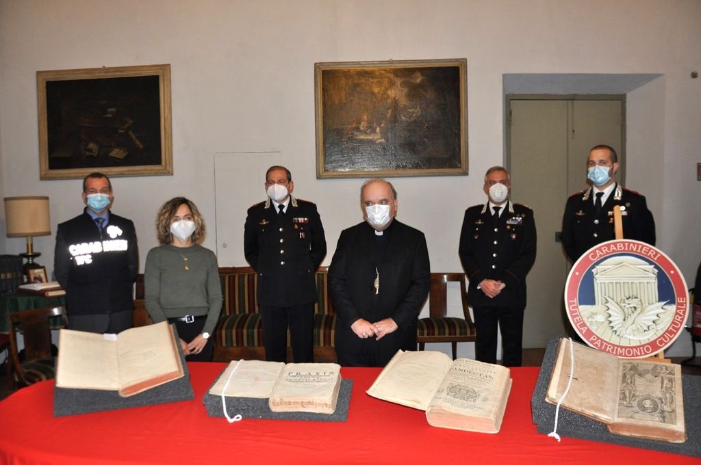 Si è tenuta questa mattina nella sede della Curia albese in piazza Monsignor Grassi ad Alba la restituzione di quattro volumi antichi trafugati dalla Biblioteca Diocesana del Seminario di Alba