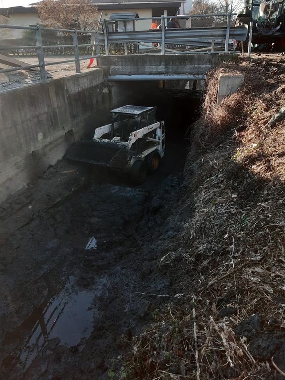 In un caso è stato utilizzato un Bobcat, un piccolo escavatore per ripulire l’alveo da