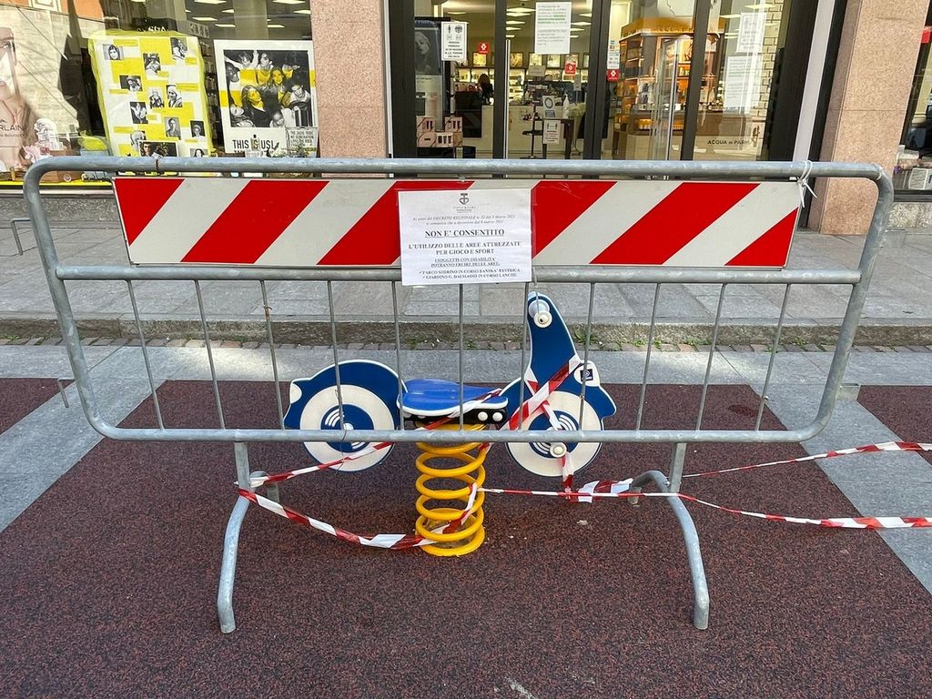 Pochi i passanti, alcuni si soffermano davanti a serrande abbassate sopra vetrine che promettono ormai inutili percentuali di saldi, altri camminano rapidi con le buste della spesa, altri ancora si abbassano la mascherina per poter bere un caffè in piedi, in mezzo alla via.