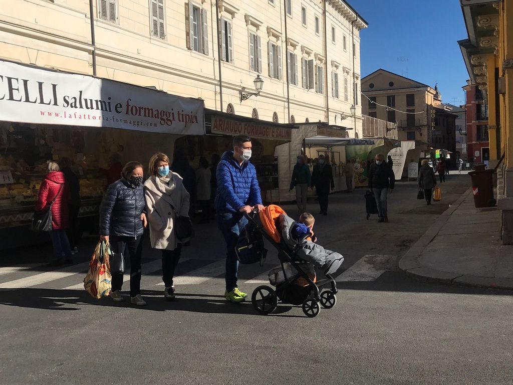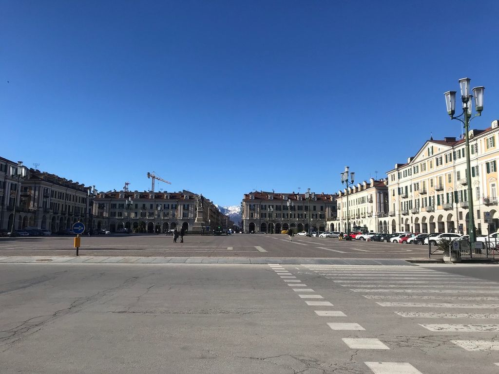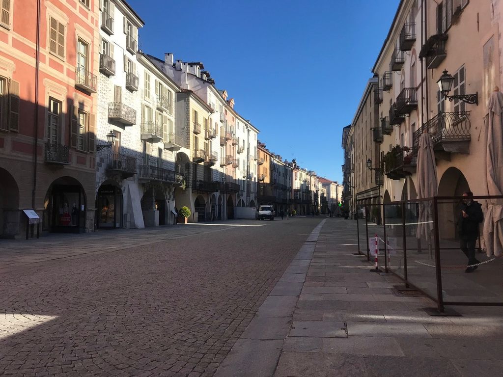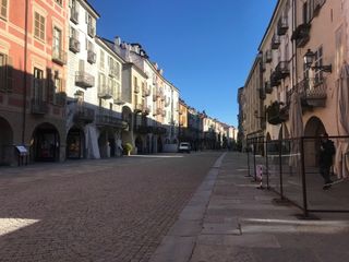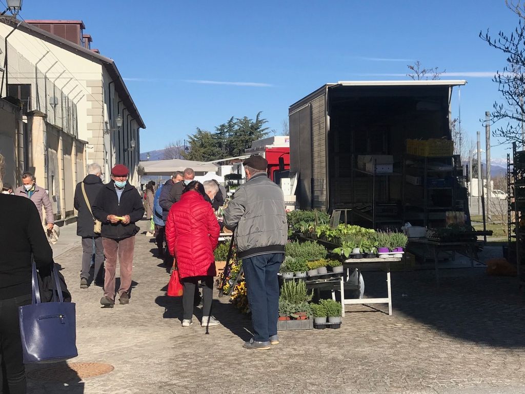 Primo martedì in zona rossa a Cuneo. Il mercato settimanale, che ogni settimana colora piazza Galimberti e via Roma, cuore della città, oggi non c’è. Nessun banco che non venda prodotti alimentari, agricoli o florovivaistici.