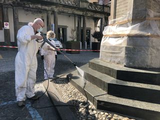 Sui lavori c’era stato un leggero ritardo perché durante gli interventi si era scoperta la presenza di numerose alghe e muffe che hanno provocato dei sottoprodotti derivati dal Biocid, dando alla statua una colorazione aranciata.