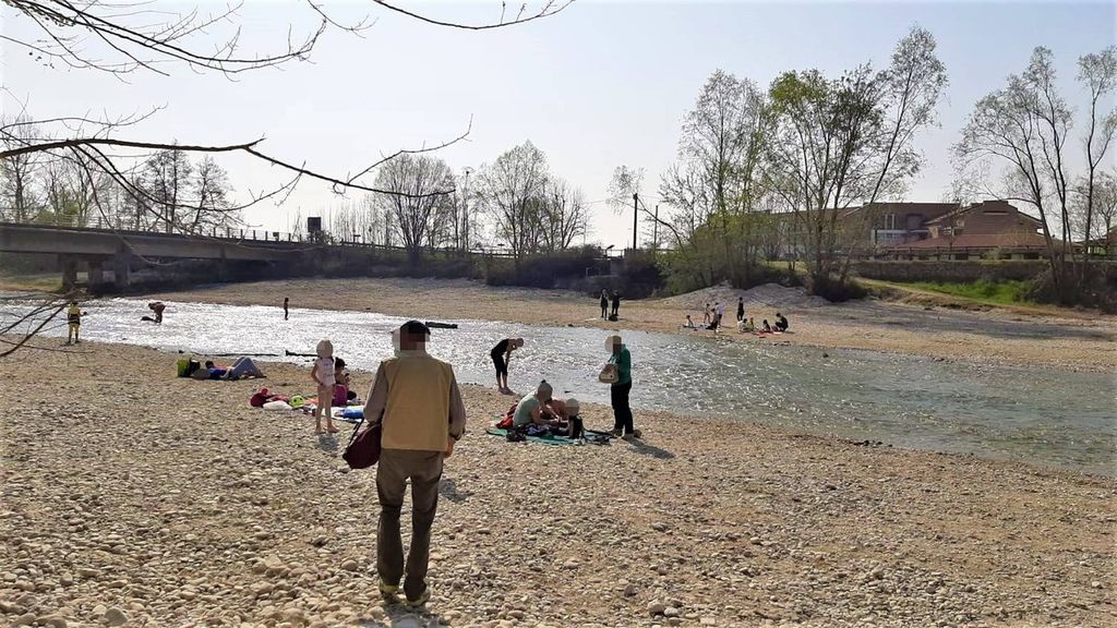Nelle foto che ci ha inviato un lettore si vedono alcuni cittadini, apparentemente alcune famiglie con bambini, che si sono recati - nonostante le restrizioni della "zona rossa" - sul litorale del fiume, all'incirca all'altezza del ponte di via della Morina, per fare una passeggiata e trascorrere qualche momento all’aria aperta.