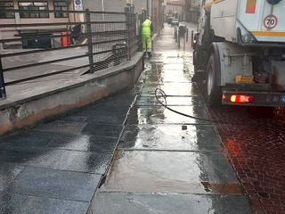 E’ in corso in questi giorni una pulizia supplementare della città, utilizzando le idropulitrici in aggiunta alla spazzatura meccanica e concentrandosi su alcuni punti critici: gli spazi sotto i portici, i marciapiedi coperti dai balconi, gli spigoli e i pilastri dei fabbricati sporcati dalle deiezioni dei cani, l’arredo urbano.