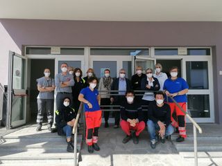 Alcuni momenti della mattinata e il gruppo degli operatori medico-sanitari con i volontari e gli amministratori comunali doglianesi