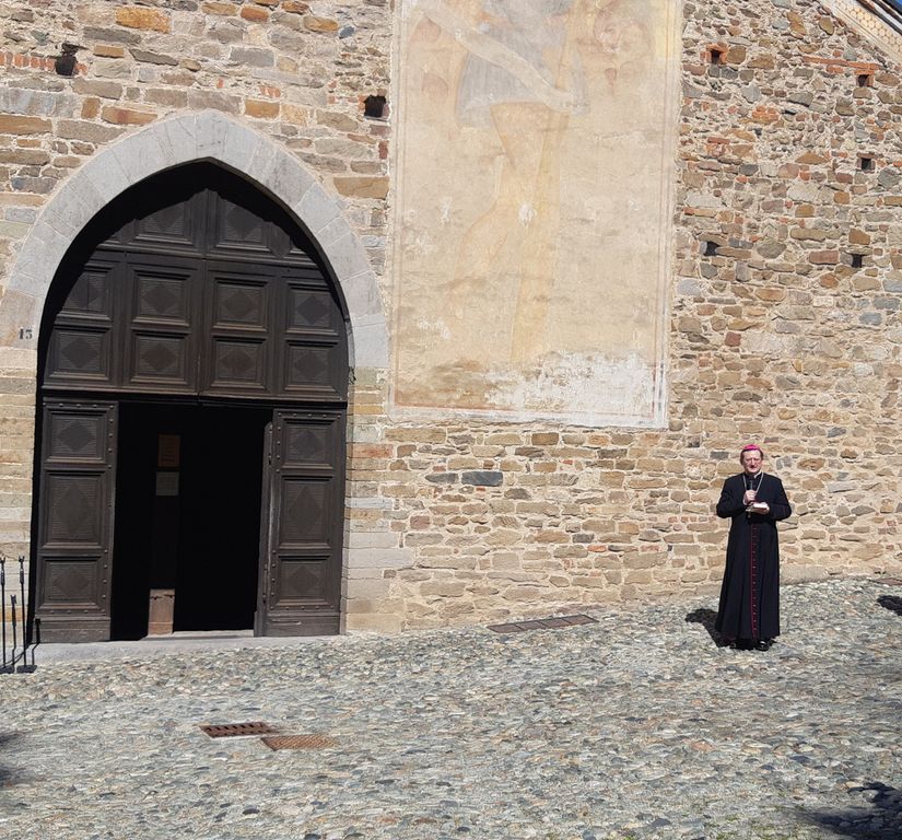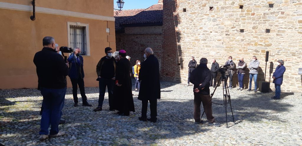 Riconoscenza e augurio per la continuazione del recupero della chiesa da parte del vescovo emerito Giuseppe Guerrini che l' aveva indicata come bene importante su cui intervenire, dopo l’ atto formale di acquisizione della proprietà in capo a famiglie nobili di Saluzzo, da parte della Diocesi, il 4 luglio del 2018.