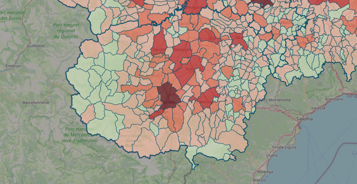 Il comune con il “peso” del contagio più consistente rispetto ai cittadini residenti è il comune di Pietraporzio che con 76 abitanti e 5 positivi registra un indice di 68,49 contagi ogni 1.000 abitanti.