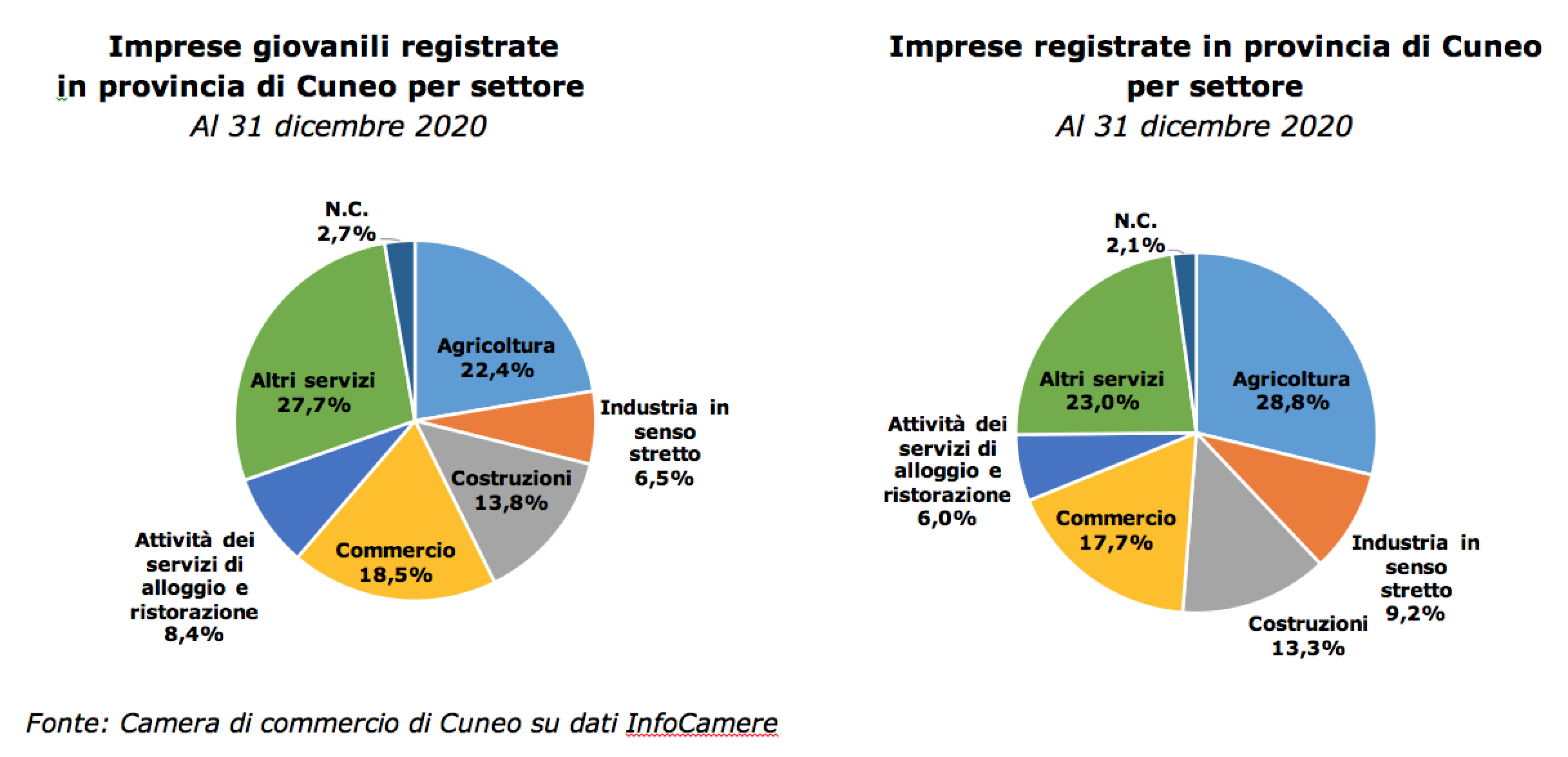 A fine 2020 sono 5.880 le imprese giovanili iscritte nel Registro imprese della Camera di commercio di Cuneo e costituiscono l’8,9% delle attività aventi sede legale sul territorio provinciale. Quanto alla rappresentatività, l’imprenditorialità giovanile vede una buona presenza di imprese femminili (29,2%) e di nazionalità straniera (14,8%). Questa è la fotografia del tessuto imprenditoriale under 35 della provincia Granda messa a fuoco dall’analisi dei dati di InfoCamere.