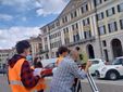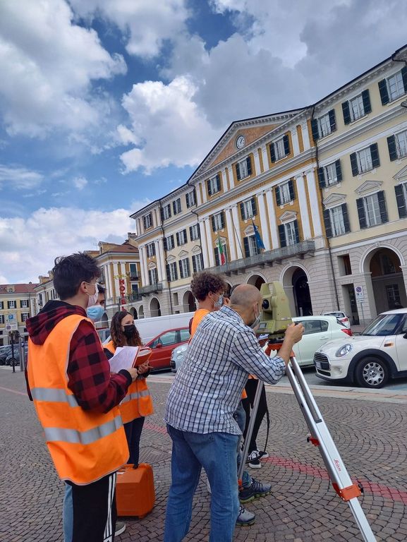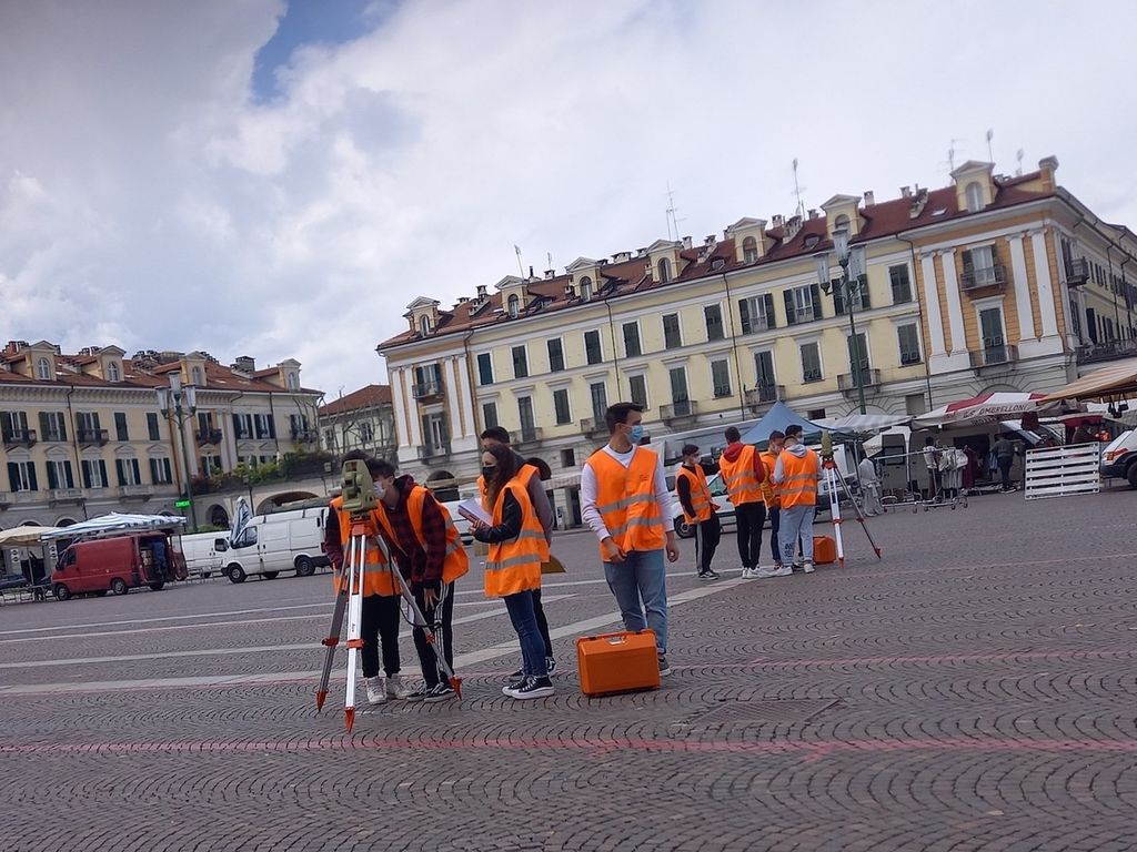 Mattinata di interessanti esercitazioni per gli studenti della classe 5^ dell'Istituto geometri di Cuneo in Corso Nizza, piazza Galimberti e via Roma.