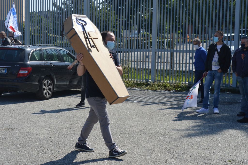 Diverse decine di persone - tra cui i rappresentanti delle varie sigle, della polizia e i consiglieri comunali Alberto Coggiola e "Beppe" Lauria - si sono riunite davanti all'entrata del carcere con cartelli e bandiere e cantando slogan. Con loro, anche una bara in cartone per la polizia penitenziaria: il gesto più significativo è stato quello di gettare a terra delle simboliche "chiavi del carcere".