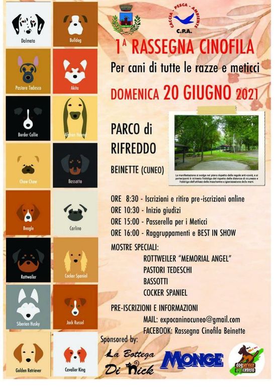 Domenica 20 giugno appuntamento con la prima rassegna cinofila del comune di Beinette.
