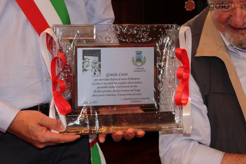 Ieri, lunedì 7 giugno, il comune di Beinette ha voluto rendere omaggio alla sua carriera e alle sue opere consegnandogli una targa: "Grazie Livio per aver dato lustro al comune di Beinette. La vita è un continuo scegliere dove andare passando vicino o attraverso le vite di altre persone, per poi tornare nel luogo dove tutto è iniziato: il paese dove sei nato".