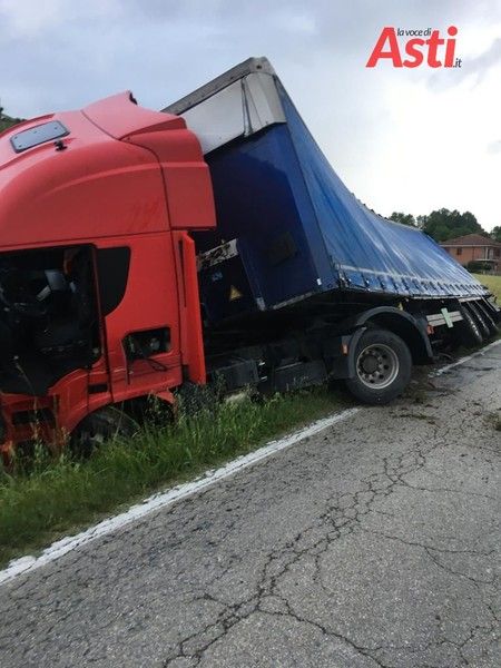 Ancora una volta, per cause da accertare, questa mattina un grosso camion è finito fuori strada tra Canale e San Damiano d'Asti.