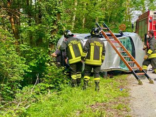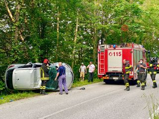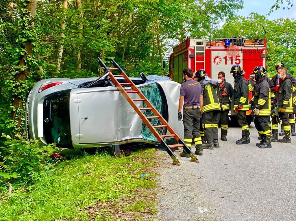 L’incidente poco fa, sulla SP 269. Ingente la mobilitazione di soccorsi intervenuta. Gli alberi a bordo strada impediscono all’auto di precipitare nella scarpata