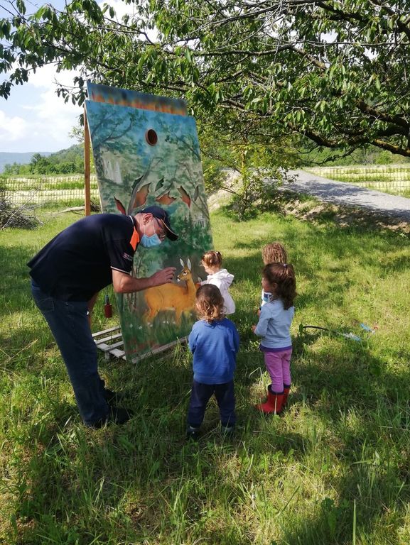Ecco che giovedì scorso, il 10 di giugno, nella cornice bellissima di Pianchiosso, al Progetto di Educazione in Natura “Gemme in libertà”, alternativo alla scuola dell’infanzia, 4 coraggiosi volontari dell’Antincendio Boschivo di Garessio sono sopraggiunti a sirene spiegate a bordo del fuoristrada e del camioncino verde.