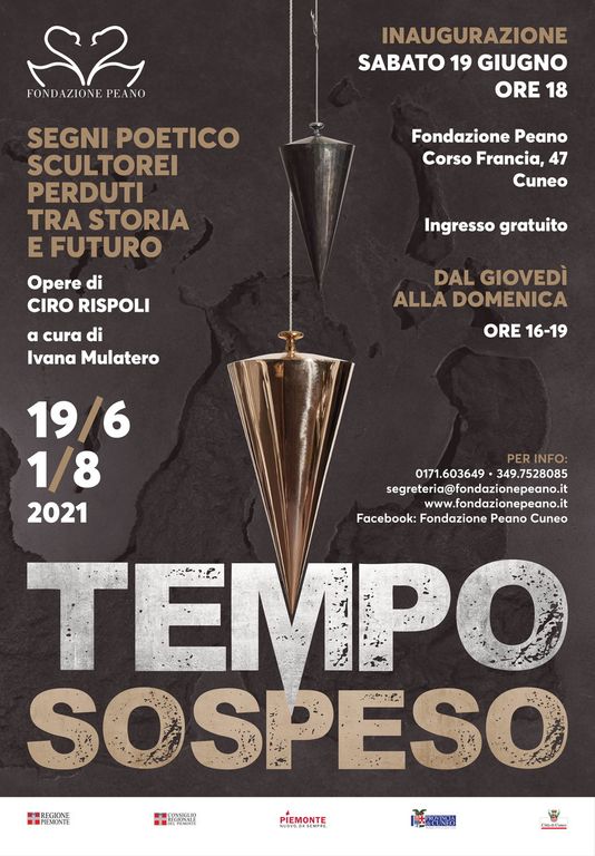 La stagione espositiva di Fondazione Peano si apre sabato 19 giugno con una personale dell’artista torinese Ciro Rispoli a cura di Ivana Mulatero. Il titolo della mostra - “Tempo sospeso. Segni poetico scultorei perduti tra storia e futuro”- deriva da un’installazione di forme iconiche bi e tridimensionali concepite espressamente per gli spazi ipogei e apogei della Fondazione Peano.