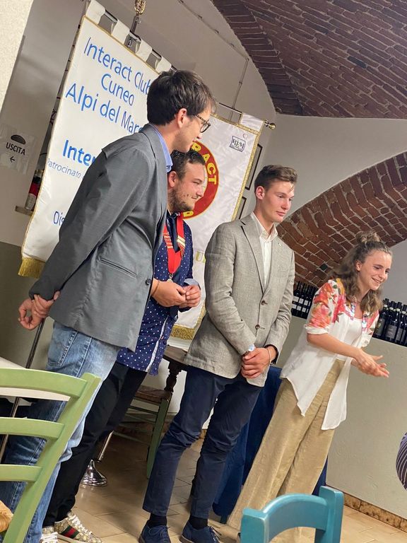 Per il Rotaract Nicolò Mellano subentra nella presidenza a Lorenzo Fulcheri, mentre invece per l’Interact Laura Dani subentra a Matteo Vegezzi Bossi. Alla serata hanno partecipato i soci rotariani padrini dei due club dei giovani rotaractiani e Interactiani: Willy Brignone, socio del Rotary Club Cuneo-Alpi del Mare e assistente del Governatore, Franca Ghiazza socia del Rotary Club Mondovì e Patricia Indemini socia del Rotary Club Cuneo.