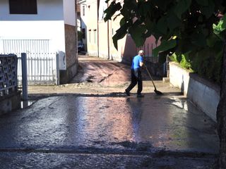 Ancora stamattina Vigili del Fuoco e residenti erano impegnati con mezzi d’opera e pompe idrovore per ripulire strade, case e cortili della parte bassa del paese dallo strato di ghiaccio e fango che li ha invasi.