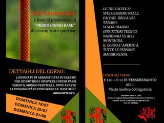 Il corso è aperto a tutte le persone maggiorenni e prevede tre giornate di arrampicata (18, 25 luglio e 1° agosto) in falesie per divertirsi e muovere i primi passi verso il mondo verticale, scoprendo le basi dell'arrampicata.