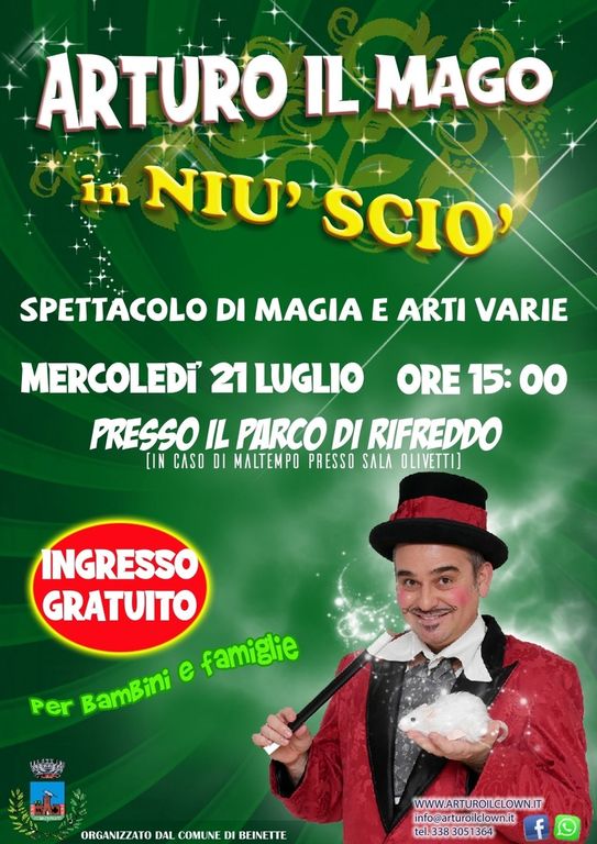 Mercoledì 21 luglio, presso il parco di Rifreddo, arriva la magia di "Arturo il Mago".