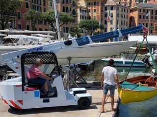 • nei cantieri nautici per le operazioni di alaggio e varo per gli ingombri ridotti della gru e per la portata allo sbraccio