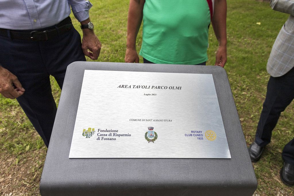 Giorgio Bozzano, sindaco di Sant’Albano Stura: "Ancora una volta, oggi, questa comunità può pregiarsi di procedere con una inaugurazione che si rende possibile grazie all'intervento della Fondazione Cassa di Risparmio di Fossano e del Rotary Club 1925, come già avvenuto in altre occasioni nel passato più recente. L'ultima che ci viene in mente è quella del parco giochi per i bimbi, che vediamo laggiù in fondo, ma non vorrei neanche dimenticare il grosso intervento di totale riqualificazione degli impianti sportivi. Non possiamo che essere grati di questa presenza costante, che rende possibile il mettere alla luce tante novità ed iniziative al fine di rendere sempre più bello questo territorio e sempre più fruibile da parte della cittadinanza, di qualunque età essa sia. Questo posto infatti è pensato proprio per tutti, giovani, pensionati, famiglie, chiunque, nel pieno rispetto di quanto è stato allestito, abbia occasione per "sedersi a tavola in compagnia"".