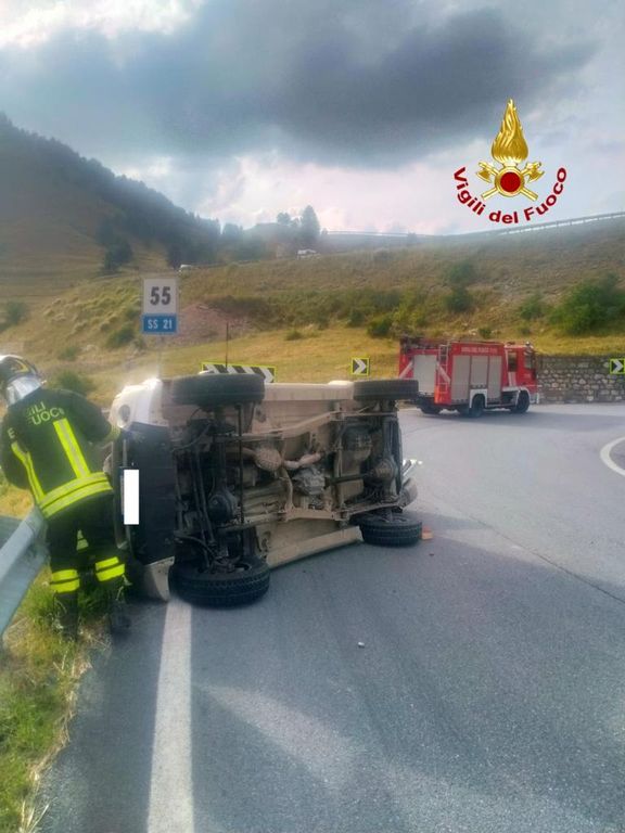 Auto con tre ragazzi a bordo si ribalta su un tornante del Colle della Maddalena