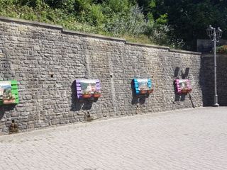Sei nuove postazioni floreali, impreziosite da composizioni consone con la stagione, sono state installate lungo il muro in pietra. I vasi sono stati realizzati utilizzando legno di riciclo mentre sopra a ognuno è stata sistemata una fotografia delle sei cappelle campestri cossanesi.