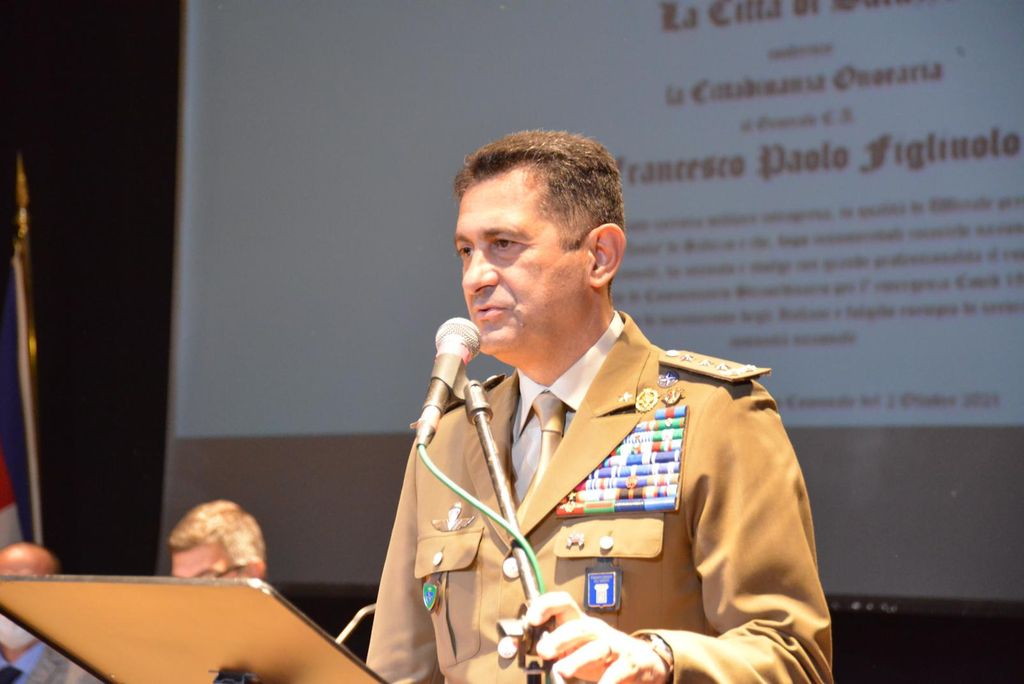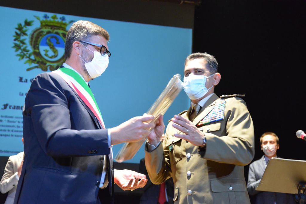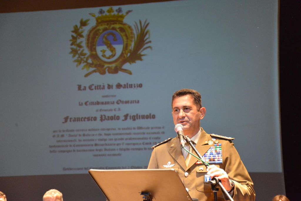 Il conferimento nell’ambito del Consiglio comunale straordinario, tenutosi nel teatro Magda Olivero, davanti ad un parterre di autorità religiose, civili (oltre una ventina di sindaci del Saluzzese) e militari. Tanti i saluzzesi collegati "da casa" via streaming per l'accoglienza al nuovo cittadino che dà onore alla città e rinnova molti legami del generale con l’ex capitale del Marchesato.