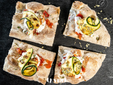 Gamberi, Concassé di pomodori, Zucchine, Burrata e Origano sono gli ingredienti che accompagnati dalla croccantezza della pinsa compongono la TREVI, un vero viaggio nel gusto.
